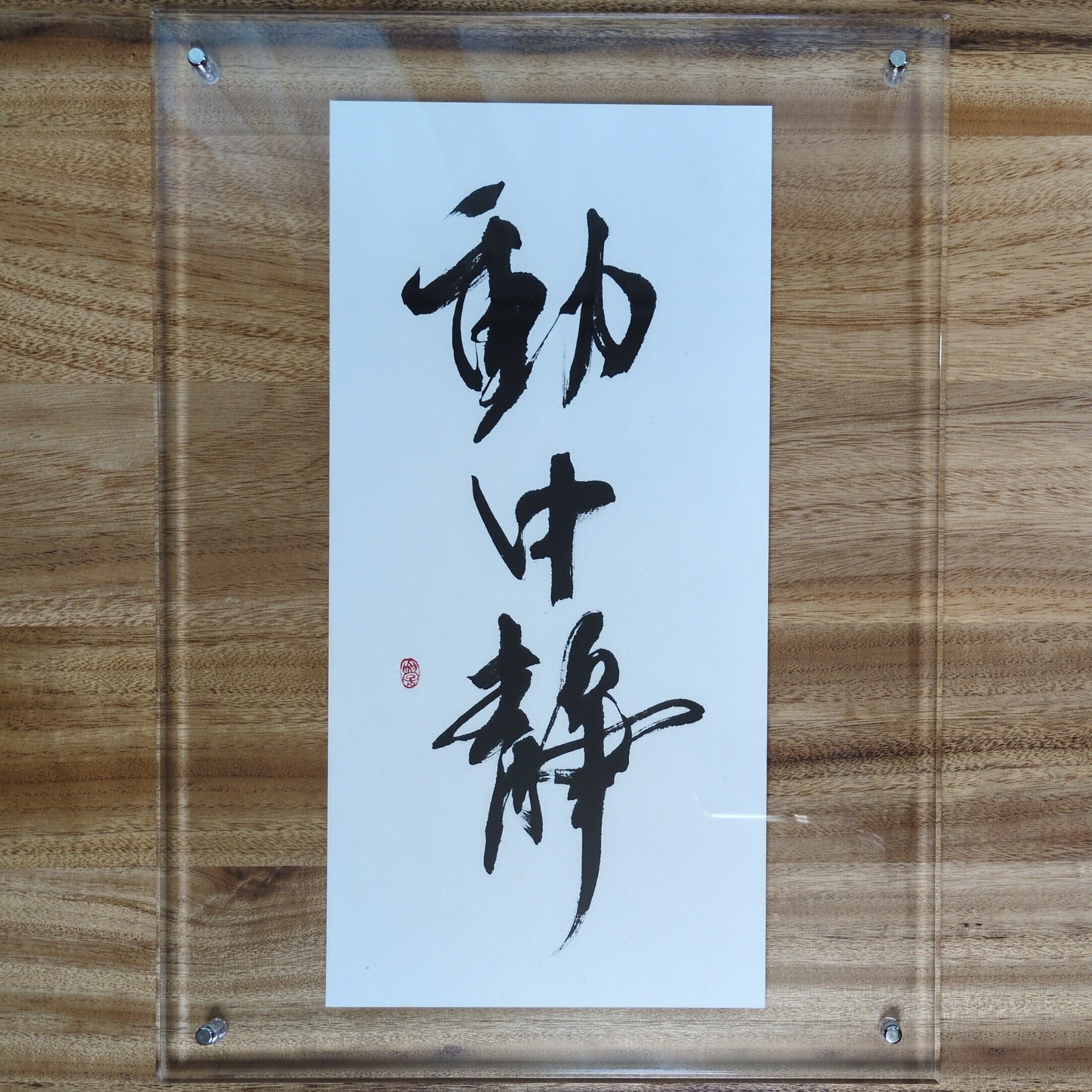 【特徴】この書作品「動中静」は、書の力強さと静けさが共存しており、心を落ち着ける空間を演出します。変化の激しい現代社会の中でも、動じない落ち着いた心や、変わらない本質・中心を保てればと思います。アクリルフレームで額装されているため、壁掛けとしても、立て掛けでも自由にお楽しみいただけます。